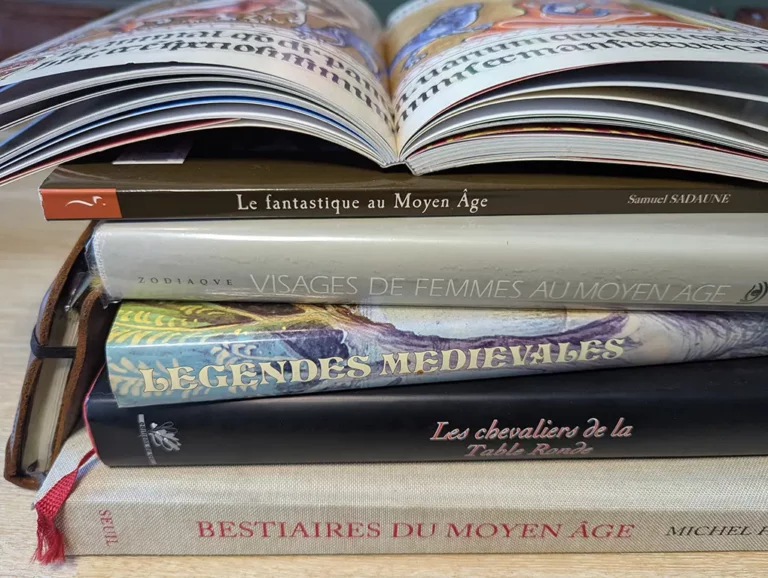 On ne parcourt pas mille ans d’histoire sans fil d’Ariane, sous peine de se perdre. Celui de L’Esplumoir, est la culture de l’imaginaire médiéval. Alors si les fées, les saints, les allégories, les animaux fantastiques, les légendes arthuriennes et autres romans courtois aux jolies Dames et preux chevaliers vous parlent, vous êtes au bon endroit !