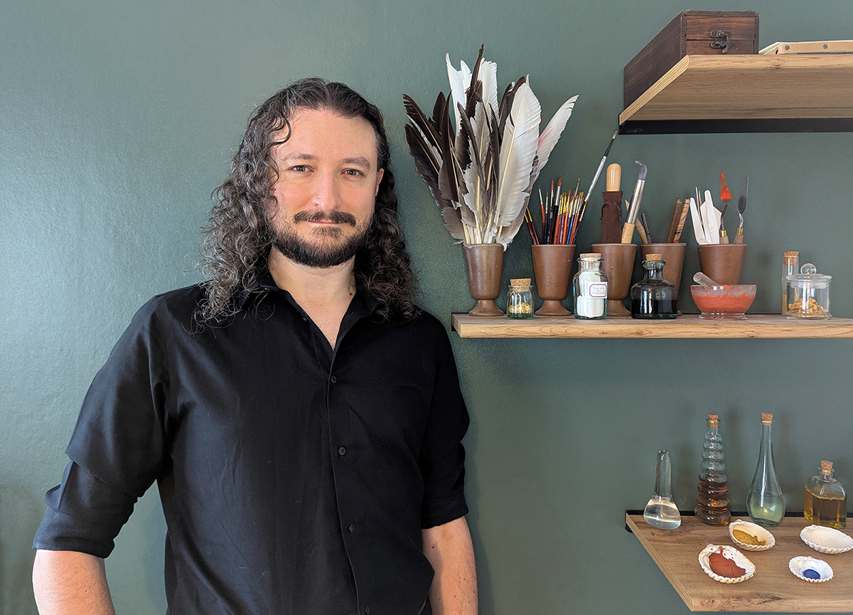 L’art de l’enluminure, c’est avant tout pour moi une histoire familiale. C’est inspiré par ma mère, enlumineuse elle aussi, que j’ai rejoint en 2015 l’Institut Supérieur Européen de l’Enluminure et du Manuscrit à Angers, qui est aujourd’hui fermé. J’ai eu la chance d’y être formé pendant 3 ans avant de réaliser sur une année de travail supplémentaire un manuscrit complet me permettant d’obtenir mon titre d’Enlumineur.